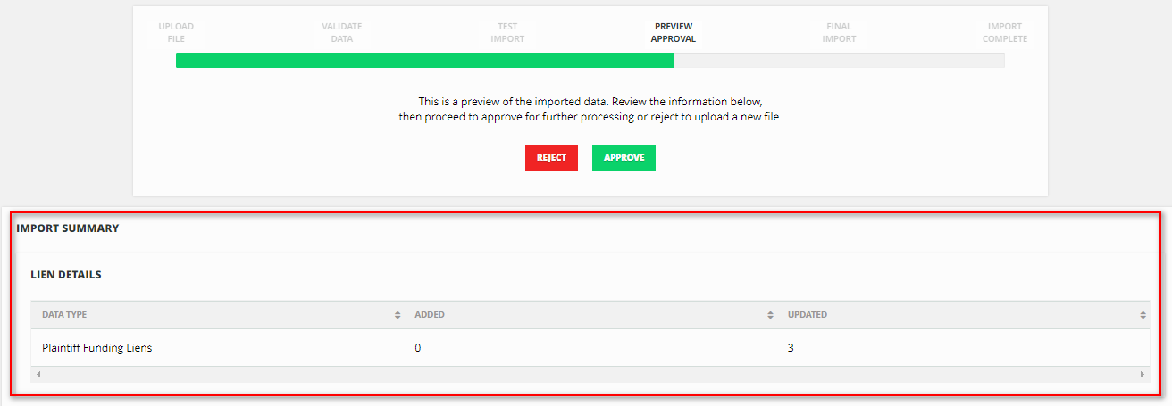 - If the preview looks good, confirm the import. Mighty will update your cases or liens based on the information in your CSV file.