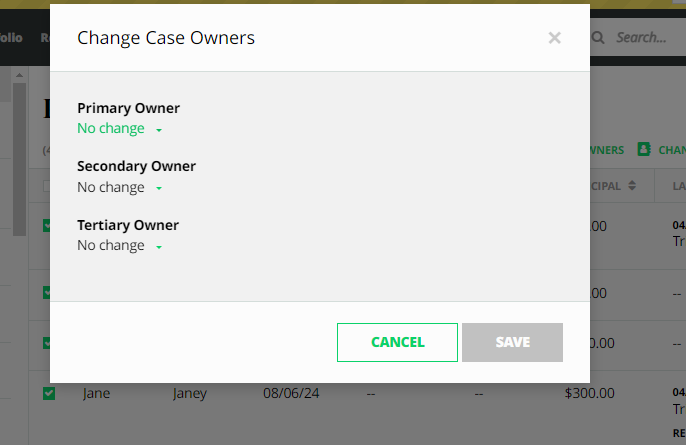 - Once done, the owners of the selected cases will be updated with the selection.