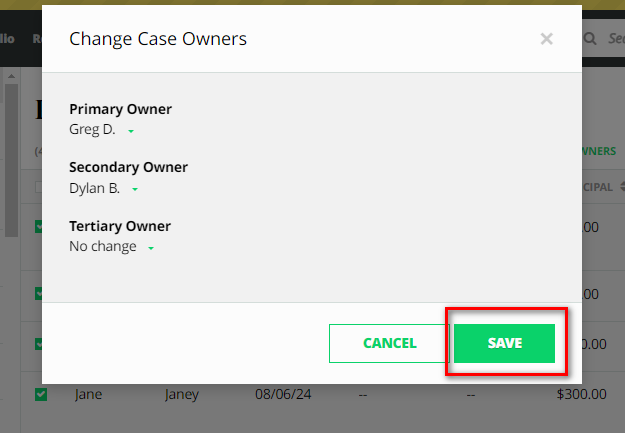 - Select the name of the case owner and Save.