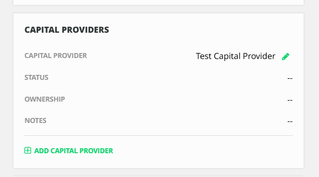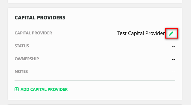 - Click on the green pen icon to edit/update the Capital Provider information: