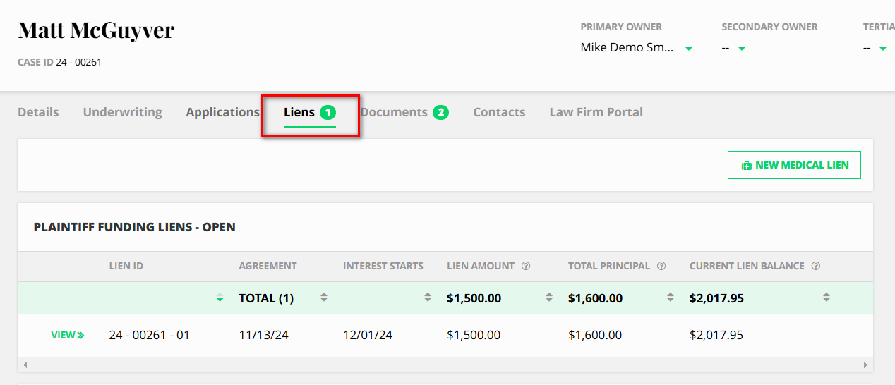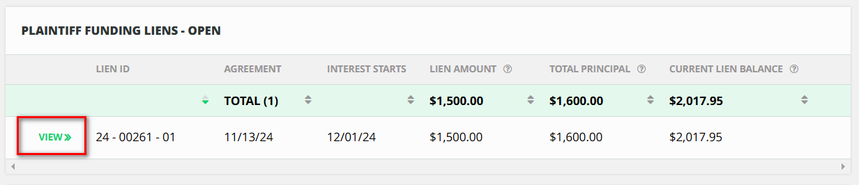 - To update an existing capital provider, go to the same Lien Details window and scroll down to Capital Providers