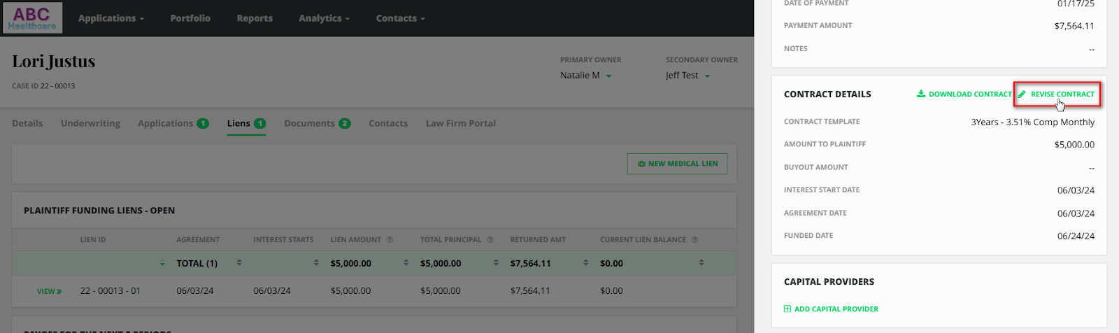 - Click Revise Contract