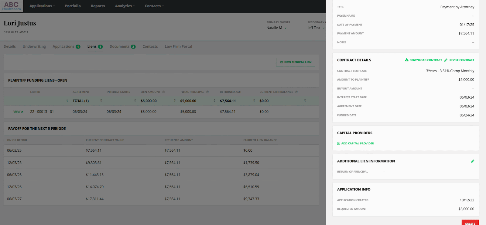 - Click Save to implement the update on the lien.